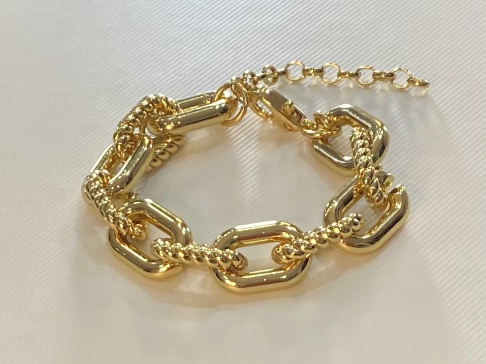 Pulseira elos liso/trabalhado dourada