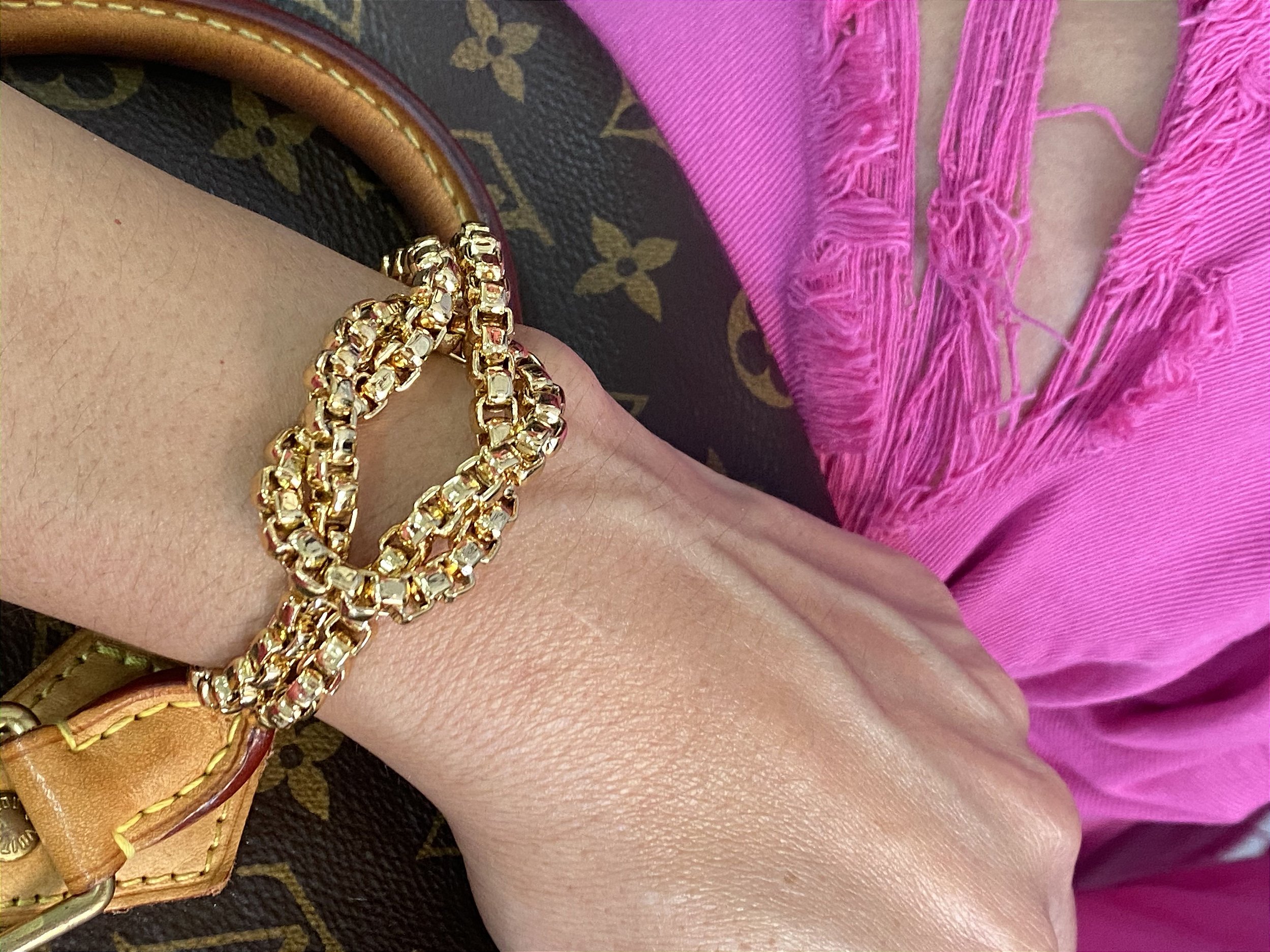 Pulseira malha nó dourada